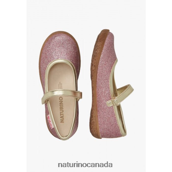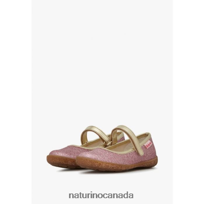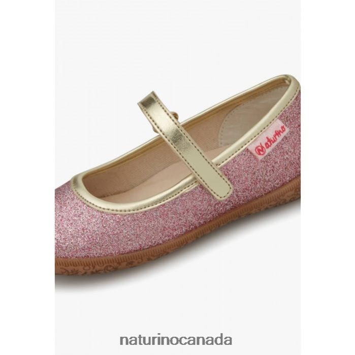 Kids PAVIA Z2N0TL526 Naturino Glitter Ballerinas with Strap Pink-Platinum