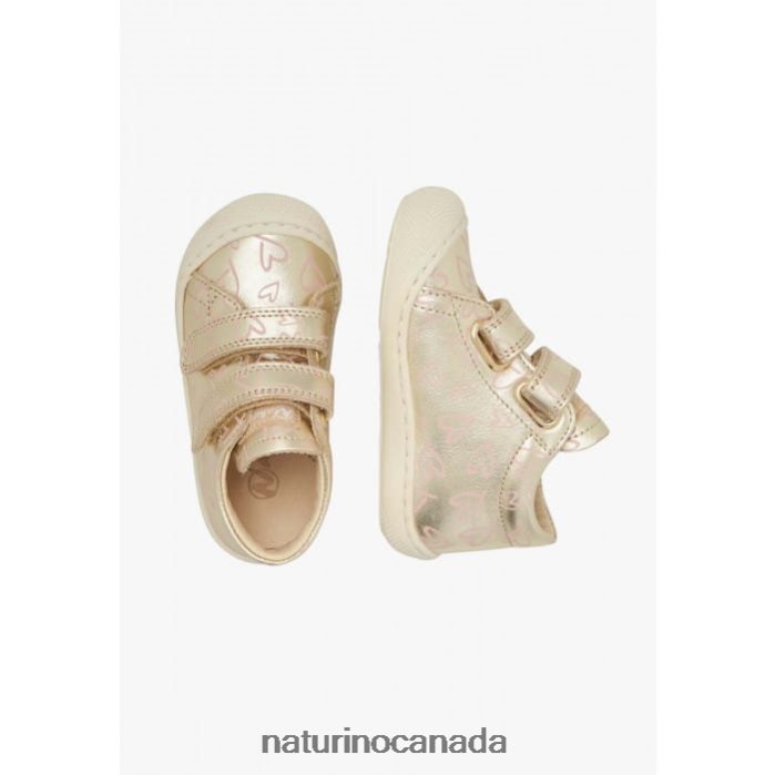 Golden Glamour For The Most Active Feet: Is The New Version Of The Cocoon Shoe, With Metallic Leather Upper Embellished With A Coloured Heart Print. The Iconic Construction Features Padded Ankle, Structured Heel And Double Velcro Fastening For A Quick And Easy Fit. Leather-lined On The Inside, They Have A Soft Rubber Sole That Rises Up To Embrace The Toe, For Perfect Protection Even When Playing On The Ground.
