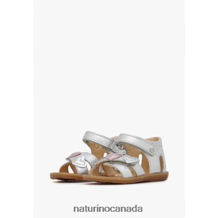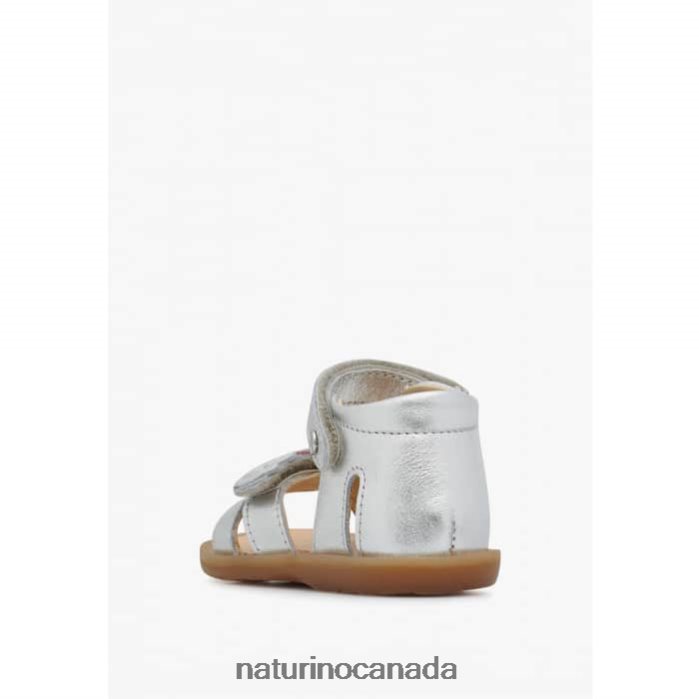 Kids BEEME Z2N0TL301 Naturino Metallic Leather Sandals Silver
