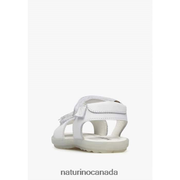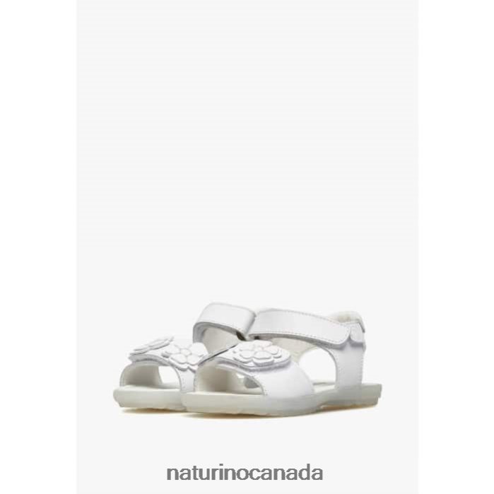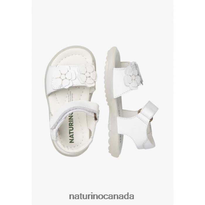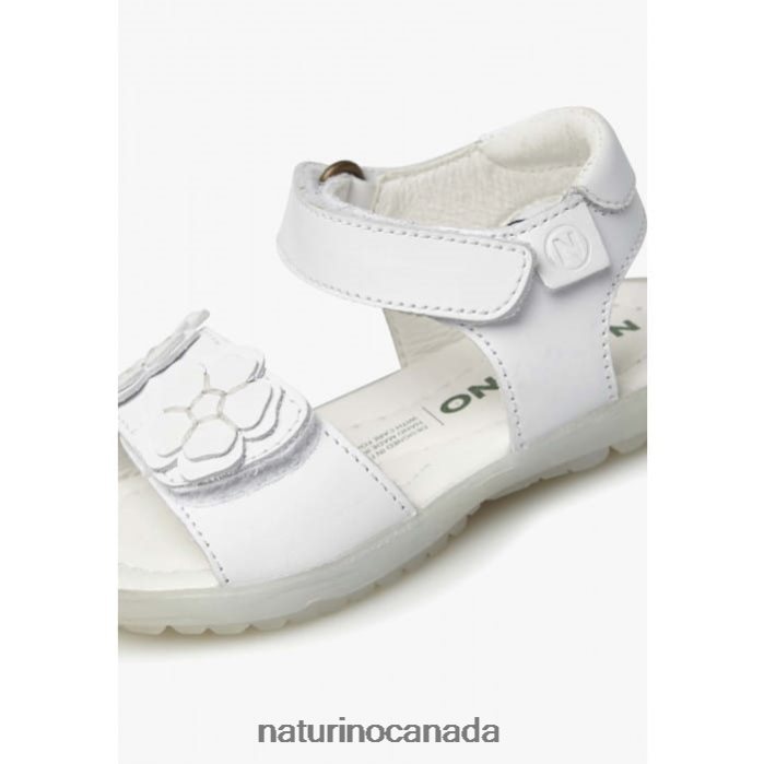 Kids BEGONIA Z2N0TL246 Naturino Leather Sandals with Applied Flowers White