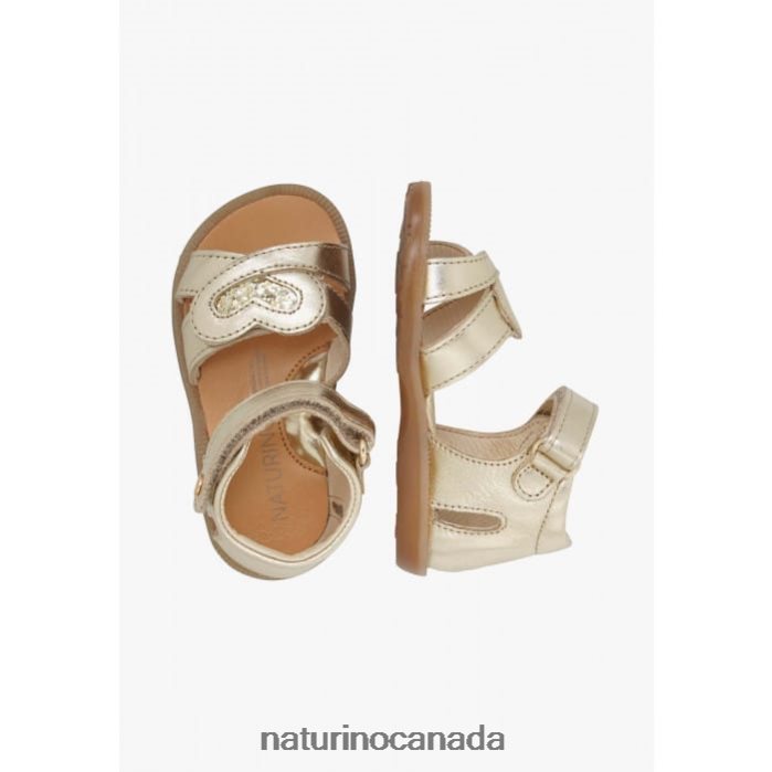 Kids CRISYTEL Z2N0TL297 Naturino Metallic Leather Sandals Platinum