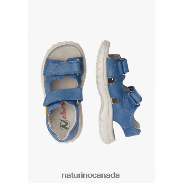 Kids DOCK Z2N0TL542 Naturino Leather Sandals with Velcro Light Blue