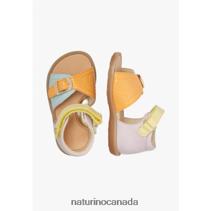 Kids JEAD Z2N0TL238 Naturino Patent Leather Sandals Lilac-Yellow-Orange
