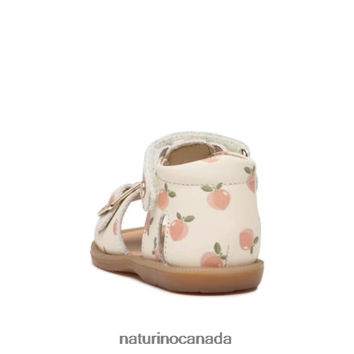 Kids QUARZO Z2N0TL307 Naturino Apricot Print Leather Sandals Milk