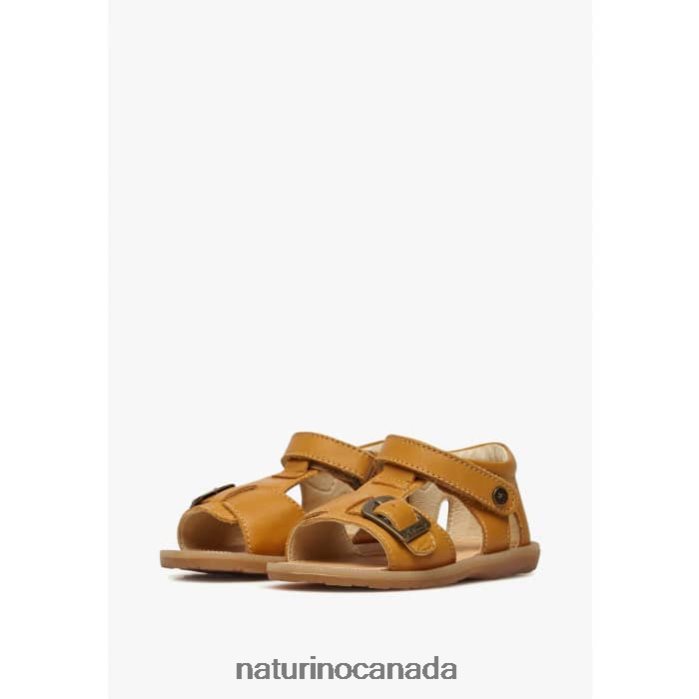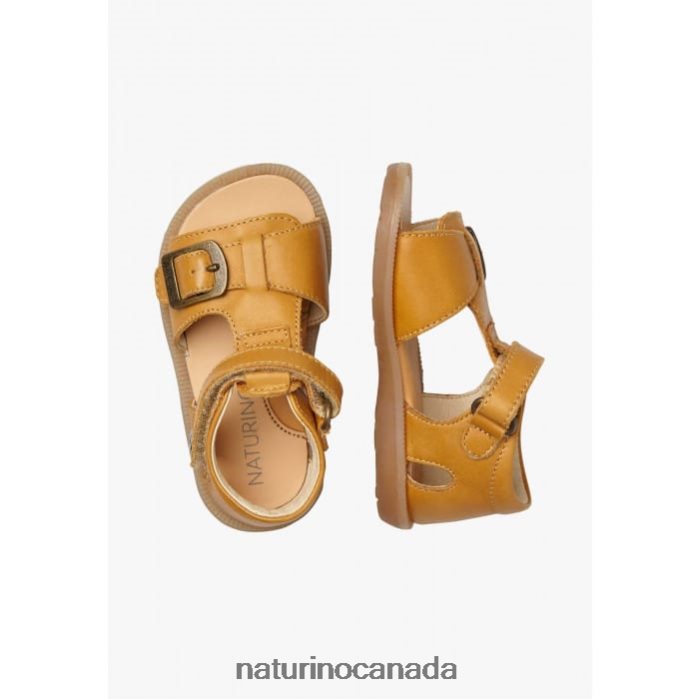 Kids QUARZO Z2N0TL320 Naturino Leather Sandals with Velcro Pumpkin