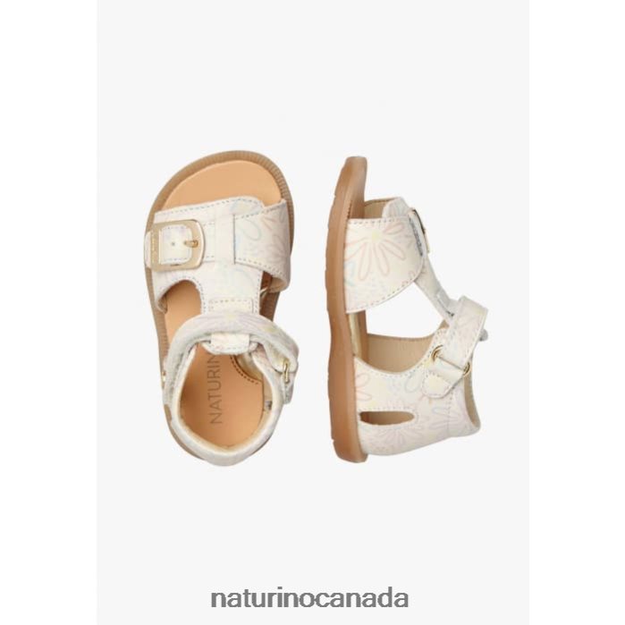 Kids QUARZO Z2N0TL549 Naturino Leather Sandals with Flower Print Milk