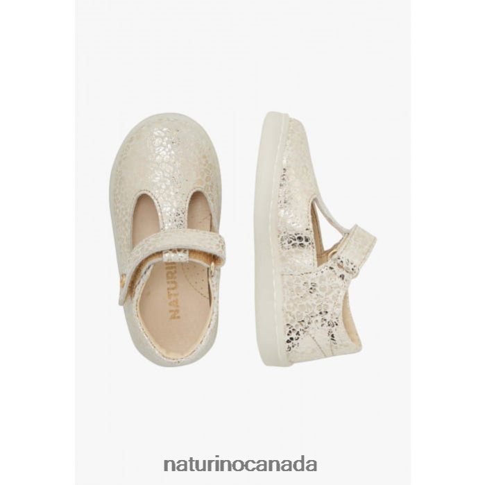 Kids SAMOMA VL Z2N0TL547 Naturino Semi-Closed Leather Sandals Platinum