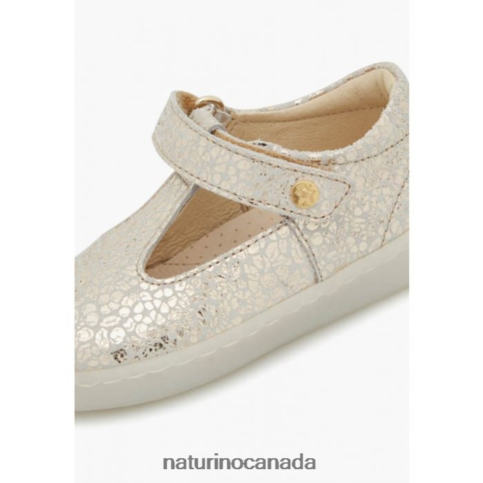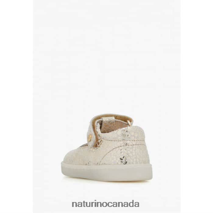 Sparkling Allure And Enveloping Shapes Define This Sandal With A Semi-closed Shape. Made Of Suede With A Gold Floral Print, It Features A Wide, Comfortable Toe Shape, Velcro Fastening At The Ankle, And Padded Ankle Providing Ideal Support To The Less Experienced Little Feet. Leather Lining And Insole, Non-slip Rubber Sole.