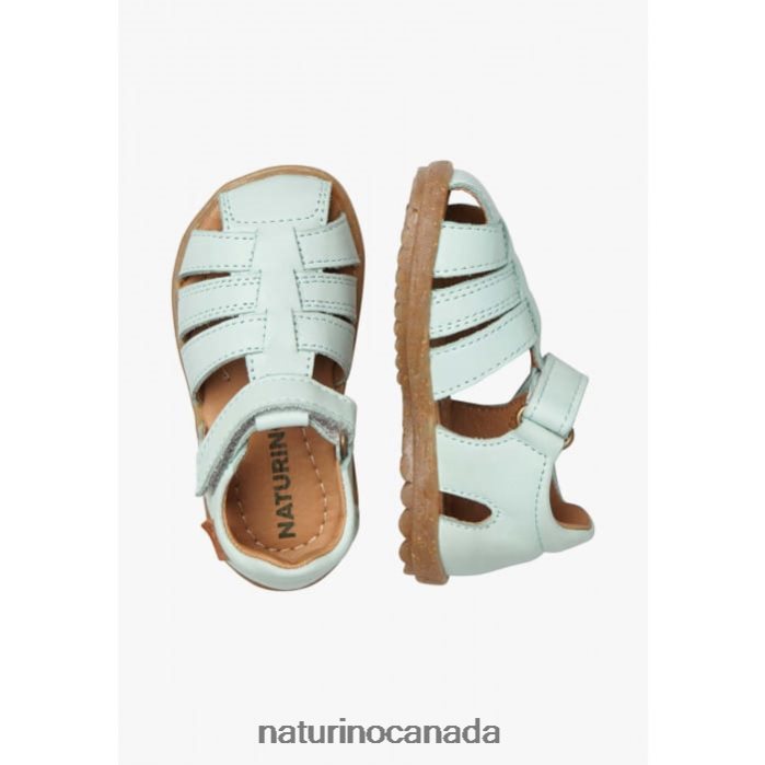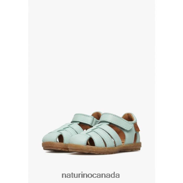 Kids SEE Z2N0TL251 Naturino Semi-Closed Leather Sandals Aqua Green