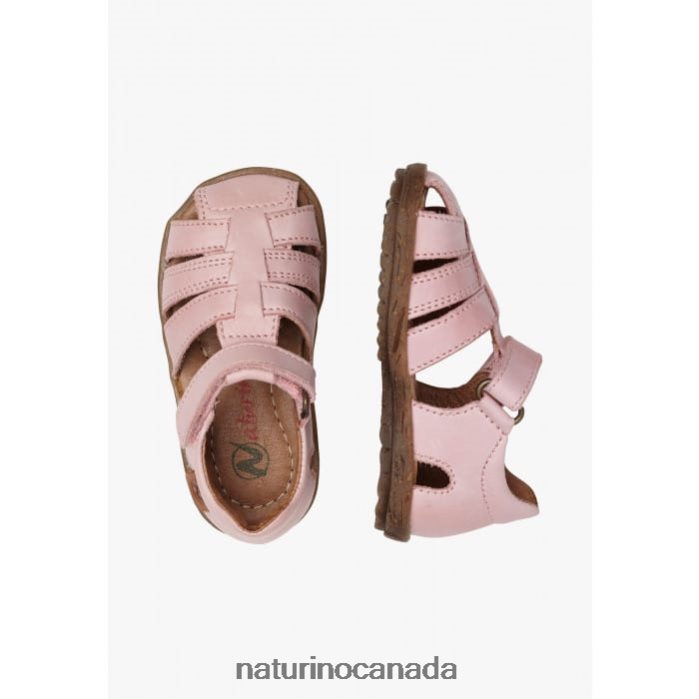 Kids SEE Z2N0TL261 Naturino Semi-Closed Leather Sandals Pink