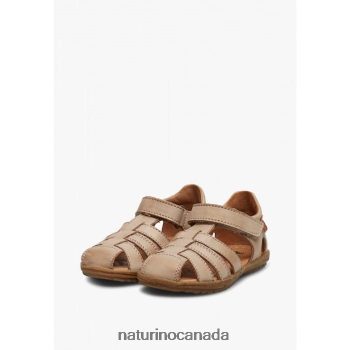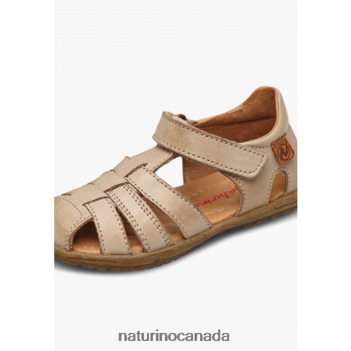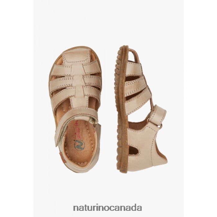 Kids SEE Z2N0TL262 Naturino Semi-Closed Leather Sandals Dove Grey