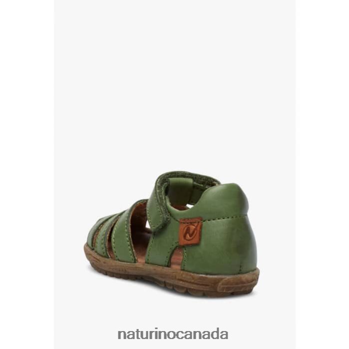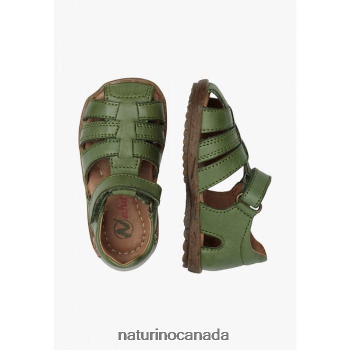 Kids SEE Z2N0TL265 Naturino Semi-Closed Leather Sandals Green