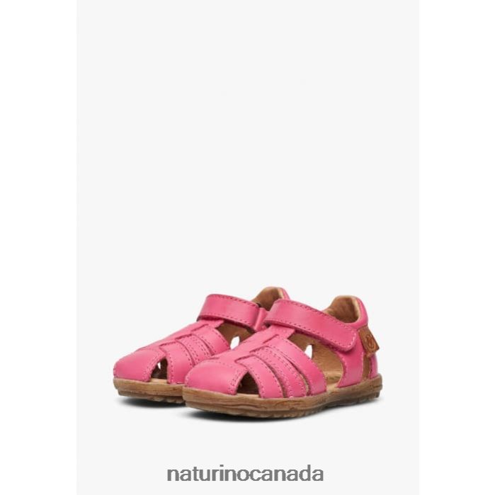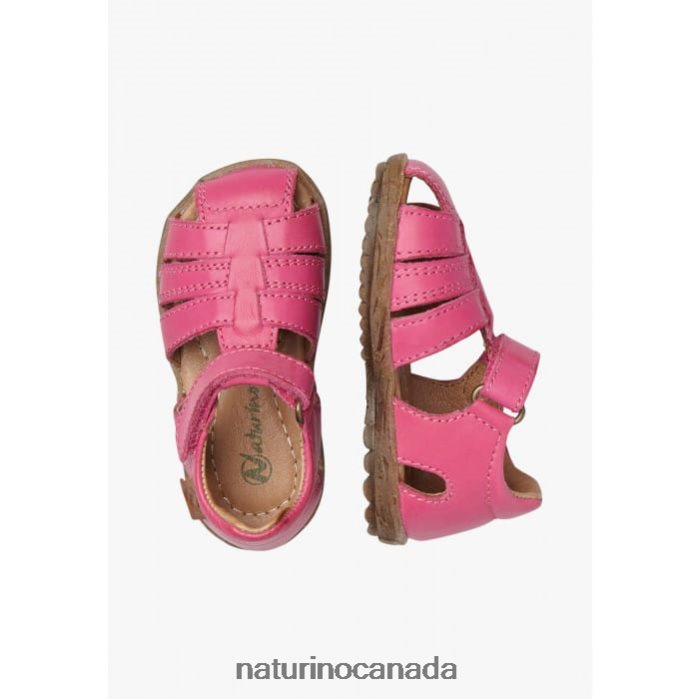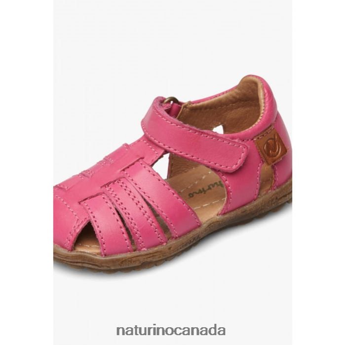 Kids SEE Z2N0TL292 Naturino Semi-Closed Leather Sandals Fuchsia