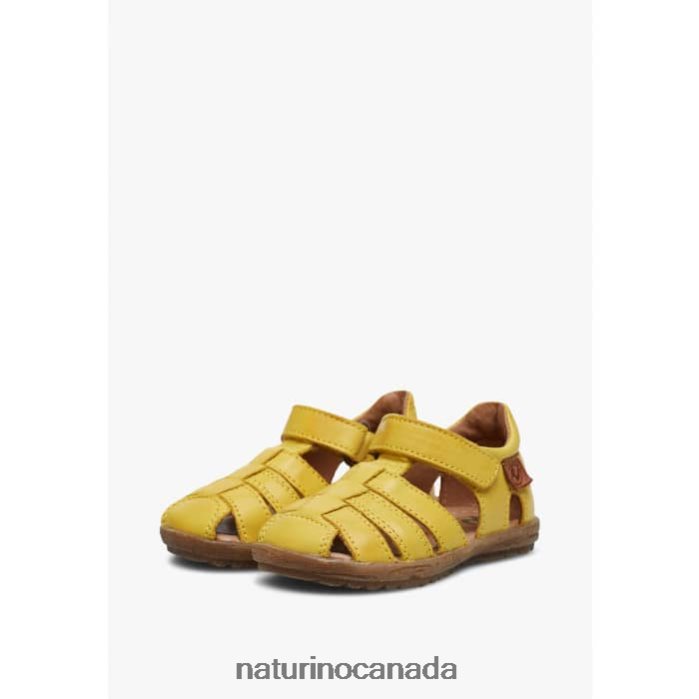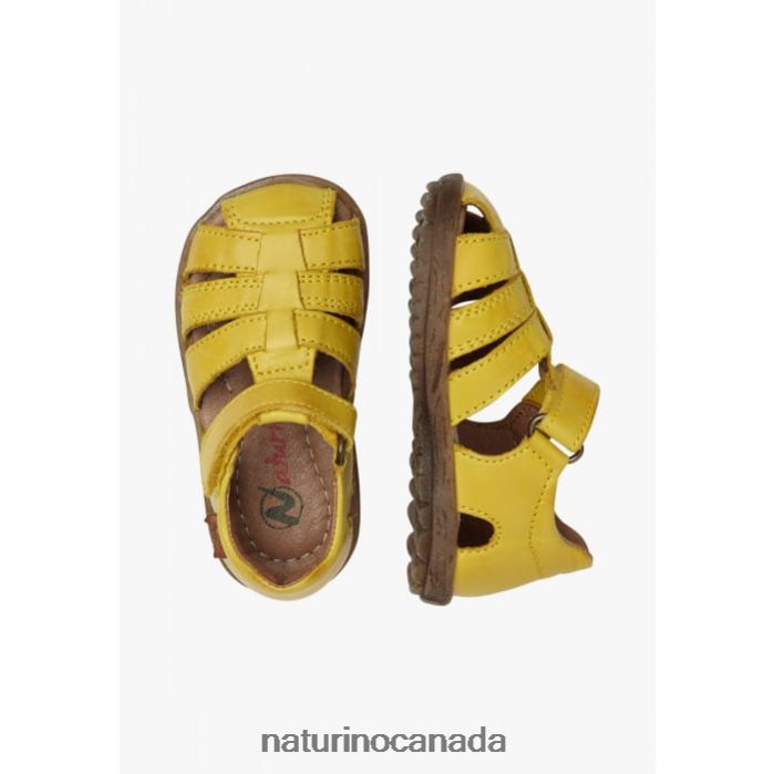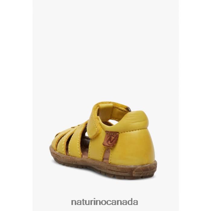 Kids SEE Z2N0TL353 Naturino Semi-Closed Leather Sandals Yellow