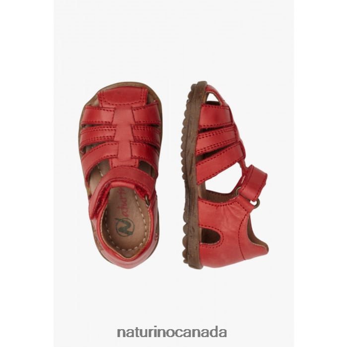 Kids SEE Z2N0TL356 Naturino Semi-Closed Leather Sandals Red