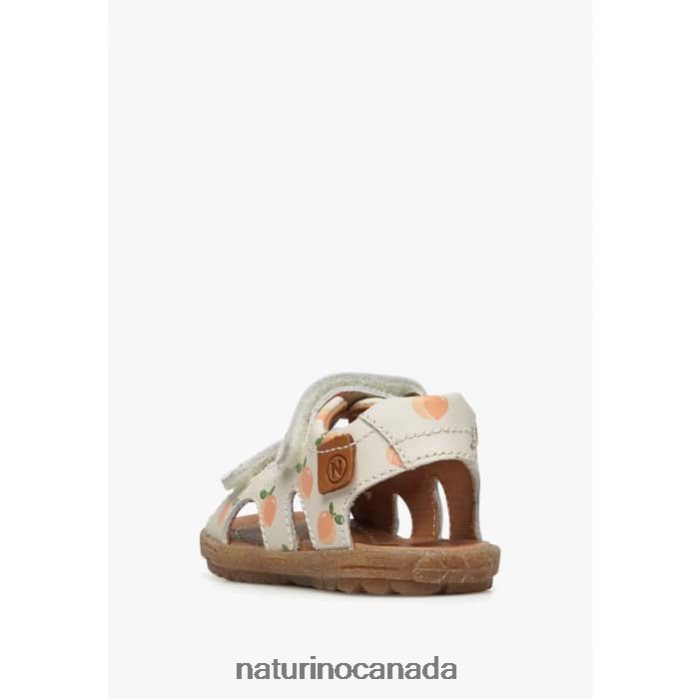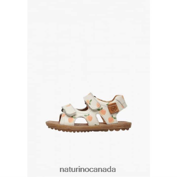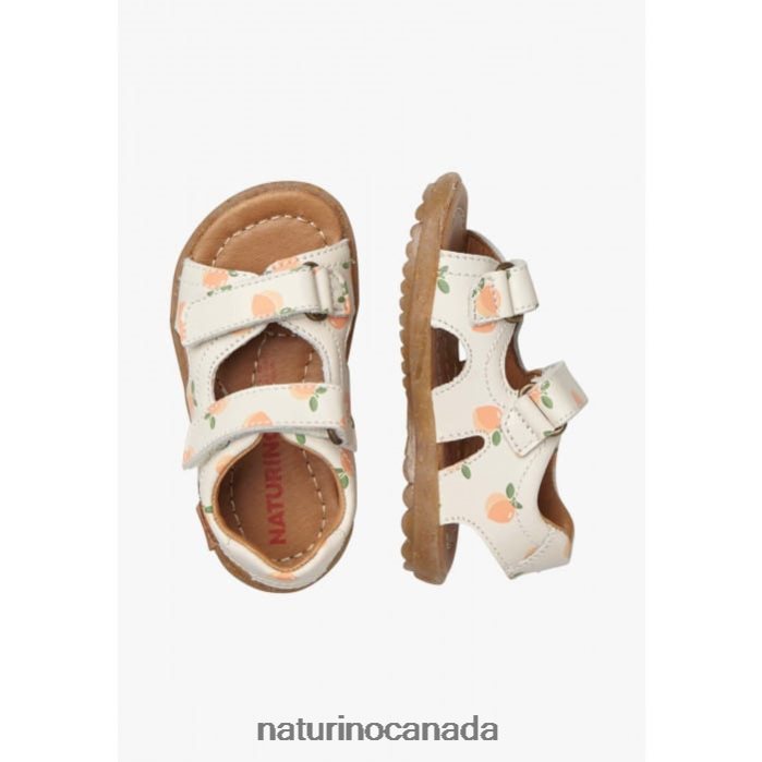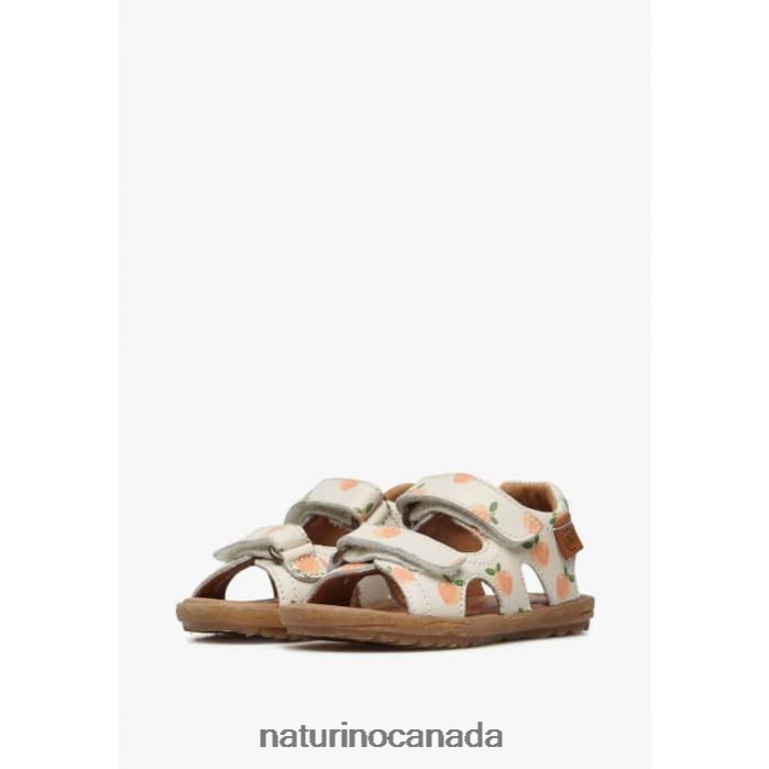 Kids SKY Z2N0TL233 Naturino Leather Sandals with Apricot Print Milk