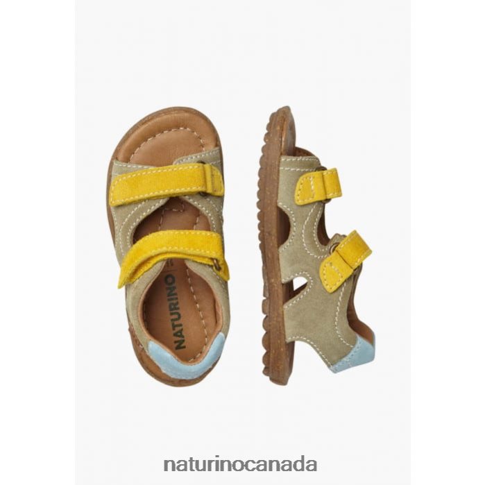 Kids SKY Z2N0TL556 Naturino Suede Sandals Grey-Yellow