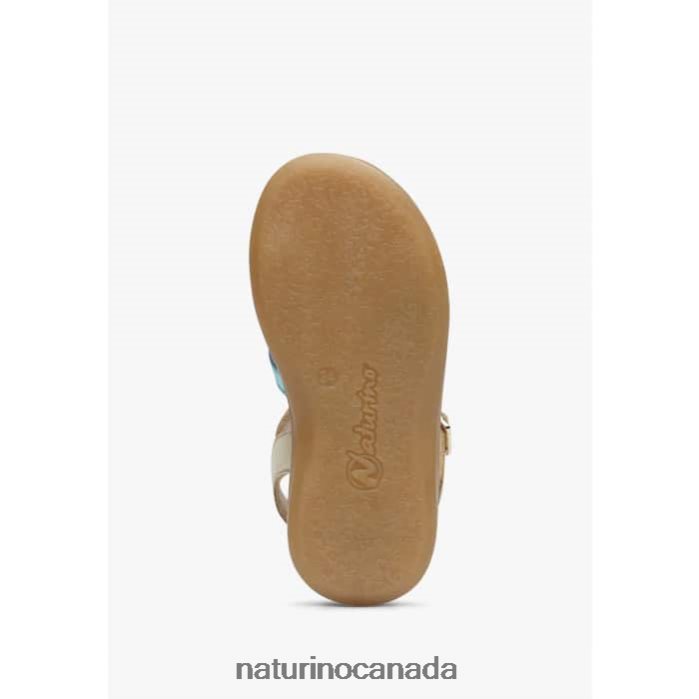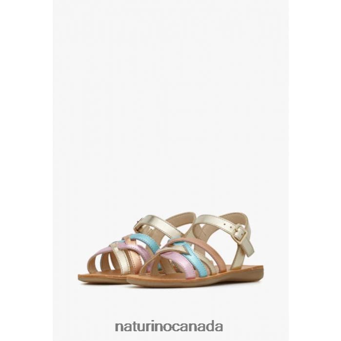 Kids VALLA Z2N0TL554 Naturino Metallic Leather Sandals Platinum