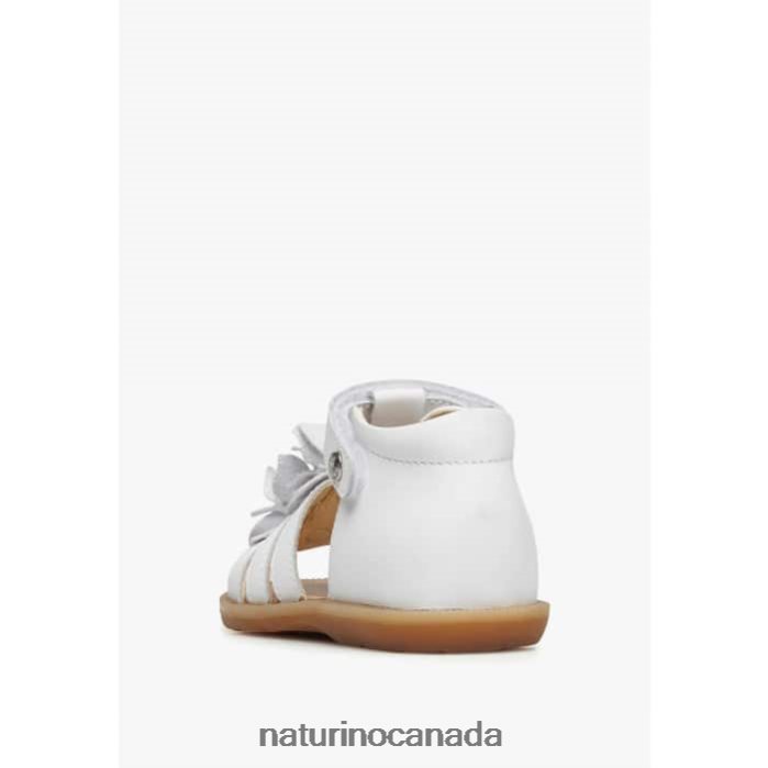 Kids ZOEYY Z2N0TL239 Naturino Leather Sandals with Applied Flowers White