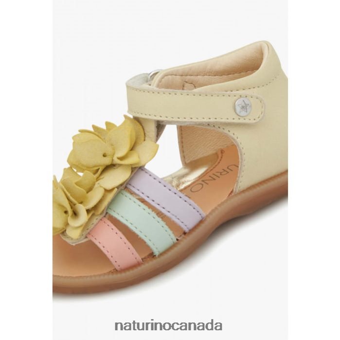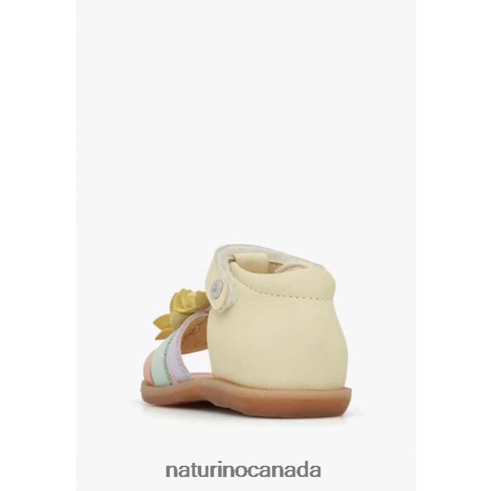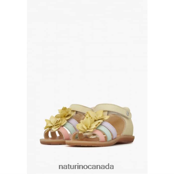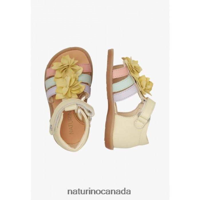 Kids ZOEYY Z2N0TL242 Naturino Leather Sandals with Applied Flowers Yellow