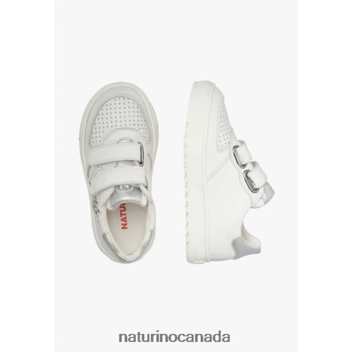 Kids HESS VL. Z2N0TL407 Naturino Leather Sneakers White-Silver